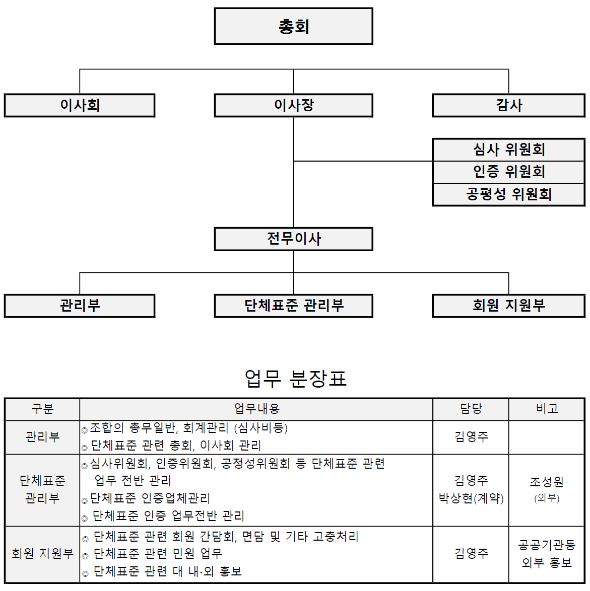 단체표준 인증업무 조직도